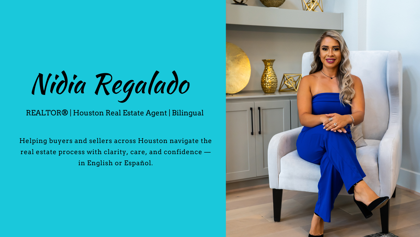 Nidia Regalado is a committed REALTOR® serving the Greater Houston area with Sucré Realty. Fluent in both English and Spanish, Nidia offers a calm and reassuring presence to buyers and sellers alike, guiding them through each step of the real estate process with patience, transparency, and care.