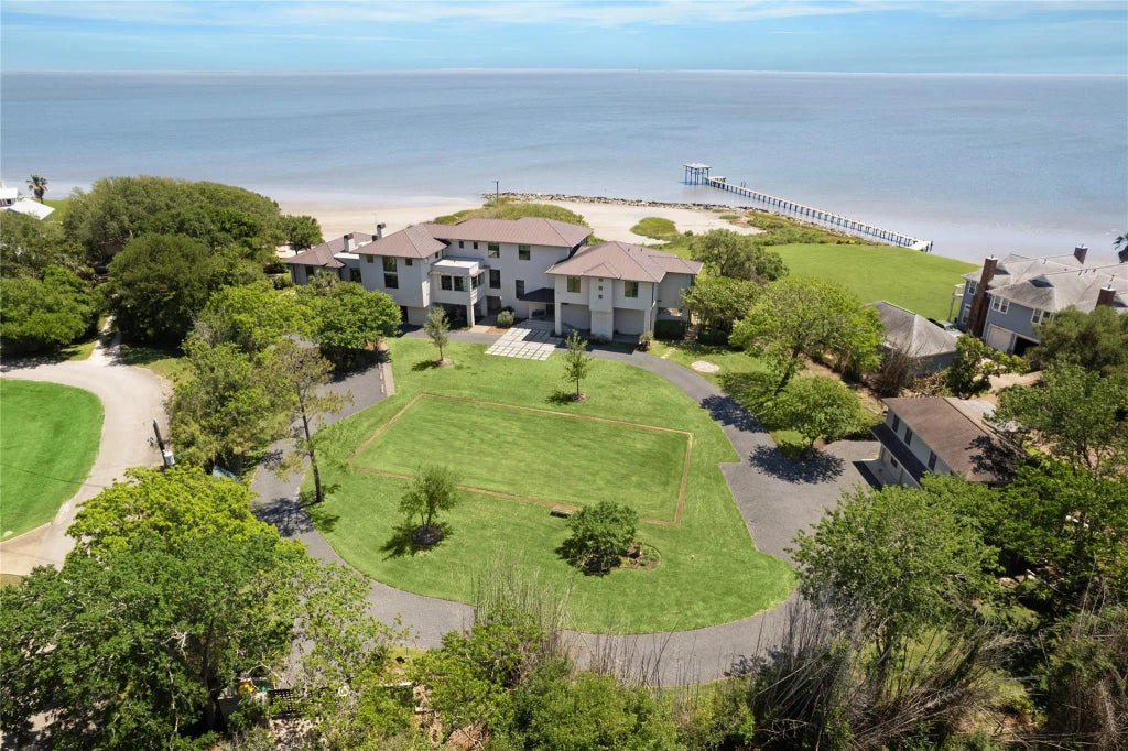 Spectacular bayfront estate with breathtaking views, just 30 minutes from downtown Houston! This 2 acre property is truly one-of-a-kind! The expansive grounds include a private beach, a mesmerizing pool, and a striking 7600sqft residence. Impeccably-designed and magazine-worthy, this resort-style home offers 5 luxurious bedrooms, an elevator, soaring coffered ceilings, and captivating views through every window. This is your secluded escape from city life, without the taxing drive! Perfect for a weekend getaway or an extended vacation, comfortably accommodating numerous guests. Enjoy relaxing on one of your many outdoor terraces as ships sail by. Kayak directly from your private shore! Participate in sailing, yachting, tennis, or socializing at the prestigious neighboring yacht clubs. Bird watchers will delight in observing the abundant marine wildlife. There is something for everyone here! Less than 10 minutes from Kemah Boardwalk. This estate is even better in person! Welcome home.