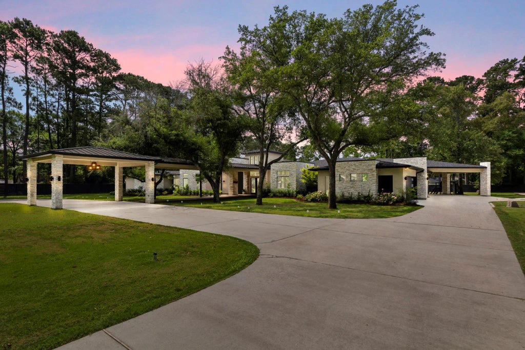 RARE MODERN 1-story oasis! 2+ acres w/gated entry, tucked in the heart of The Woodlands in rare acreage area. Zoned to sought after Woodlands schools. Stunning stone/stucco Tipler design feat wood tile, designer finishes & expansive windows. Open layout incl lg living area w/surround sound, floor-to-ceiling stone fireplace & chef-inspired kitchen w/oversized island, high-end SS appl, sleek cabinetry & full prep kitchen. Primary retreat w/spa-style bath, patio access for wellness space & dual custom closets. 3 secondary beds w/ensuite baths; bonus playroom between. 2 offices, 2 utility rooms, media/gameroom & resort-style backyard w/outdoor kitchen, fireplace, pool/spa & a 2-story deck w/media screen. Multipurpose building w/full bath, kitchenette, oversized garage, RV parking—ideal for guest suite or business. Add feat include whole home generator, fenced area for animals, pool house storage & glass-enclosed bar. One-of-a-kind opportunity you don’t want to miss!