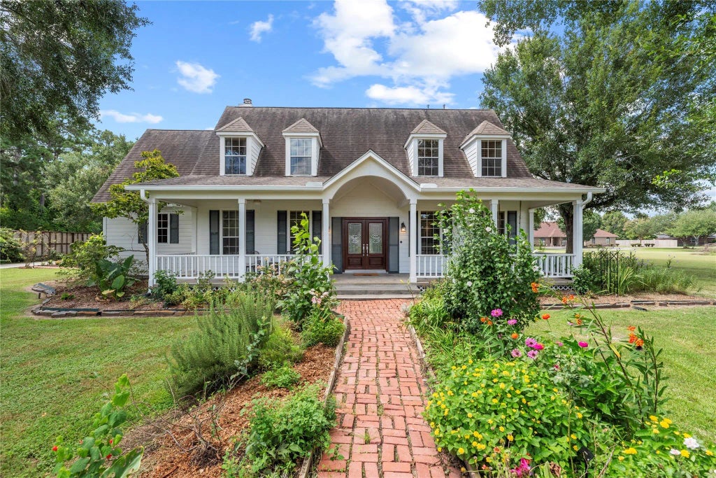 The perfect farm house is waiting for you to call it home! RARE opportunity in Lakes at Cypress Hill-with over 4100 sq ft of living space in this custom home & almost 2 acres of land- idyllic country lifestyle close to the city. Fall in love with natural wood floors & double sided fireplace. The kitchen is a cook's dream with beautiful natural wood cabinetry & butcher block countertops. Open shelving adds to the charm. No expense spared with high end stainless steel appliances - you will love the Viking double oven! The pantry is literally a room by itself! The primary bedroom can easily accommodate oversized furnishings & the pocket door entrance to the study is beautiful & practical. Enough room for 2 desks for those sharing office space. And 2 game rooms! 1 can serve as another bedroom with an attached bath. Two beds up with attached baths. There is even a room for home schoolers. In back is a fully fenced pool, a chicken coop, gardens & a home generator. NEVER FLOODED! Welcome home