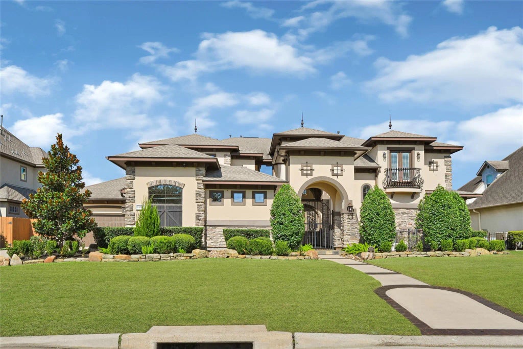 Custom WATERFRONT HOME!From the moment you enter,you're welcomed by a serene courtyard!Inside,you'll find an open concept floor plan with soaring ceilings,elegant finishes & abundant natural lighting streaming through the large windows overlooking the BACKYARD OASIS!The gourmet chef's kitchen features Thermador appliances,pot filler,custom cabinetry and 2 SPACIOUS ISLANDS with sinks that make hosting effortless!Discover a one-of-a-kind SUNKEN GROTTO WINE ROOM designed for both connoisseurs and entertainers.A custom designed study with second floor loft that offers both sophistication & functionality.The primary suite is a true retreat with spa-inspired amenities including direct access to backyard,barrel vault ceiling over the soaking tub, his/hers vanities/closets & DRY SAUNA!Additional highlights include a second primary bedroom on first floor,all bedrooms with en-suite baths.RESORT STYLE BACKYARD featuring a covered patio,kitchen,heated pool and spa surrounded by LUSH LANDSCAPING!