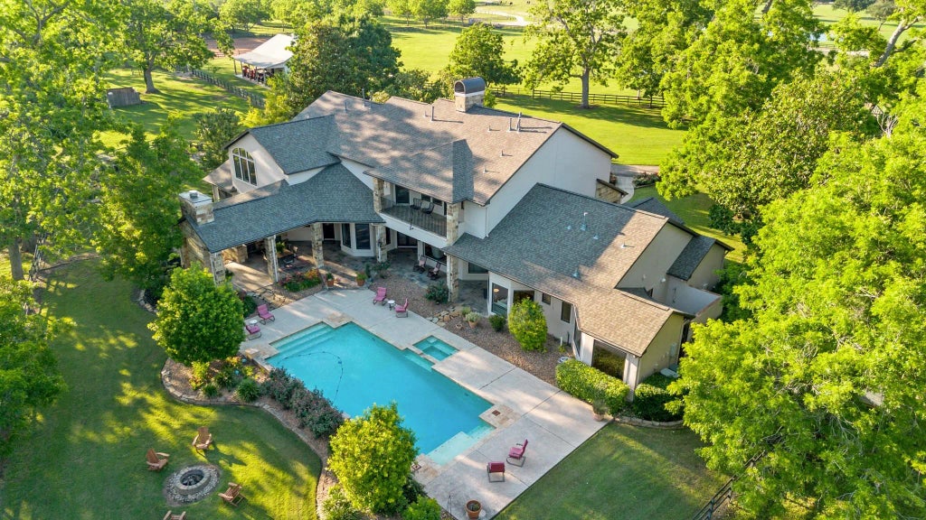 Experience the elegance of this secluded equestrian estate, set on 10 FULLY FENCED ACRES in the GATED FOSTER ISLAND ESTATES. Equestrians will love the 6-STALL MORTON BARN, AIR-CONDITIONED TACK ROOM, wash rack, RIDING ARENA, & wrap around pastures. The custom WATERFRONT home spans 6,878 sqft & offers 6 spacious bedrooms—ALL W/ENSUITE BATHROOMS. The airy open-concept features soaring ceilings, panoramic windows, & designer touches. The gourmet kitchen shines w/SUB-ZERO FRIDGE, WOLF COOKTOP, DOUBLE OVENS, DUAL DISHWASHERS, WARMING DRAWER, & PELLET ICE MAKER. The luxurious owner’s suite includes a spa-style bath, dual walk-in closets, & BONUS FLEX ROOM. Enjoy the dedicated office, media room, game room, WINE CELLAR, & PRIVATE GUEST QUARTERS W/KITCHENETTE. OUTDOOR LIVING includes a FULL KITCHEN, fireplace, SPARKLING POOL/SPA, & firepit. NEW ROOF, INTERIOR PAINT, & UPSTAIRS FLOORING. Plus a hen house & active beekeeping. Just 45 min from downtown Houston. Substantial AG EXEMPTION in place!